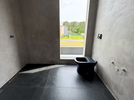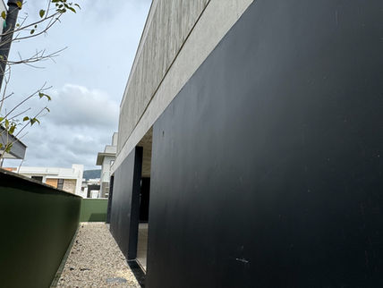 Diferenciais: Arquitetura contemporânea de linguagem brutalista e materialidade nobre. Implantação na divisa sul, com jardim lateral voltado para o norte e excelente insolação. Suíte no térreo com acesso direto ao exterior. Amplas aberturas e ventilação cruzada. Terraço voltado para o oeste, ideal para apreciar o pôr do sol ou incorporar um fire pit. Claraboias na escada e no corredor superior.